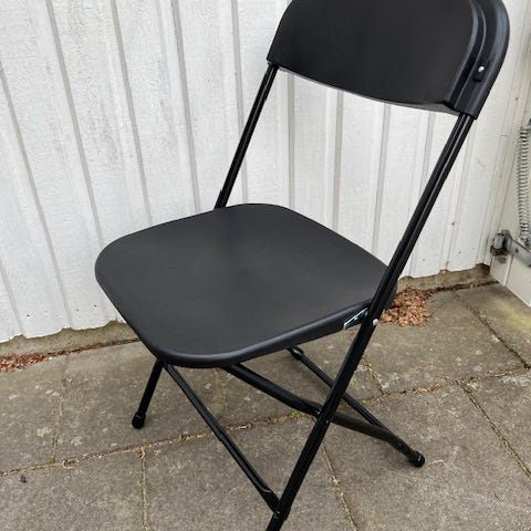 Snygga industristolar i svart metall. Inköpta på auktion och ommålade i svart metallfärg. Märkta med Sony. Funkar både inne och ute och går att fälla ihop.