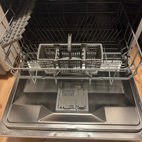 Bosch SilencePlus bänkdiskmaskin i silver. Har två hyllplan, får plats på diskbänken som är 60cm djup. Vatten kopplas på med tillhörande slangar. Kan gå ner lite i pris vid snabb affär.