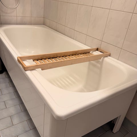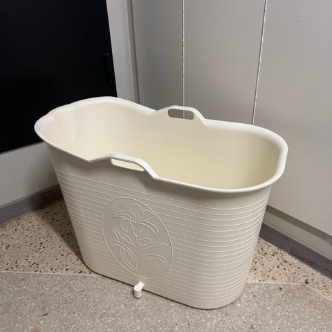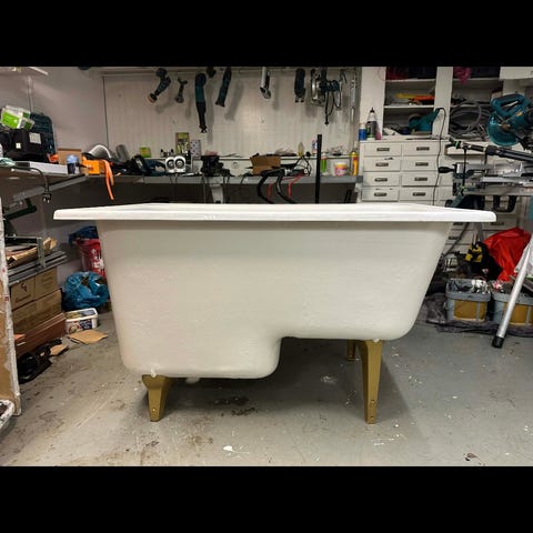 Sittbadkar av plast, sanitetsakryl med kromade lejontassar.