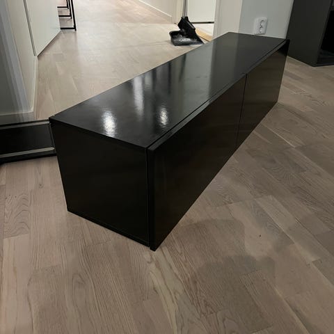 Skåben är i mycket gott skick och har använts varsamt. Jag har själv satt dekorplast på glasdörrarna, men det kan enkelt tas bort om man vill.
