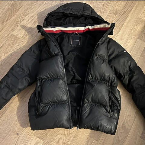 Tommy Hilfiger dunjacka / vinterjacka, mörkblå. Avtagbar luva. Jättefint skick. Inköpt för ca 1 år sedan på Kids Brand Store. Kvitto finns.