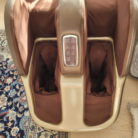 Fin maskin som masserar både fötter, vader och lår med värme. Ett program är 20 minuter. Fint skick men lite nopprig från kattklor som syns på bilderna!