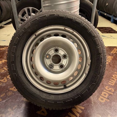 4st plåtfälg med Kumho dubbdäck, mönsterdjup c:a 6-7mm
