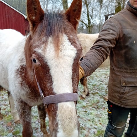 Ung hingst, nästan 2 år gammal, med ett mycket trevligt temperament. Jag tog just dessa bilder. Tyvärr skymmer hans tjocka vinterpäls hans Appaloosa-färg. Han är Buchskin med diverse fläckar. Han förväntas nå en höjd av 150-152 cm. Bourbon kommer att säljas med fullständiga amerikanska papper och ett hästpass. Kom och se den här unge mannen!