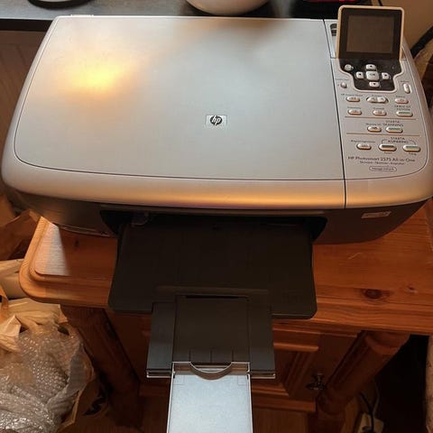 Skrivare funkar bra att skriva ut och kopiera, den blinkar på B & C knappen för den vill ha original patroner, funkar fast det blinkar. Helt ny svart färgpatroner i!