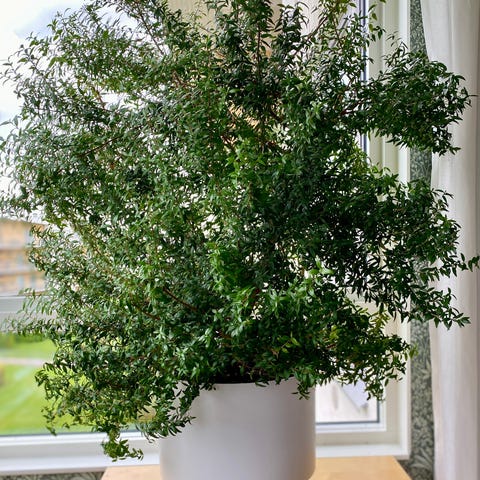 Grön inomhusväxt i svart kruka