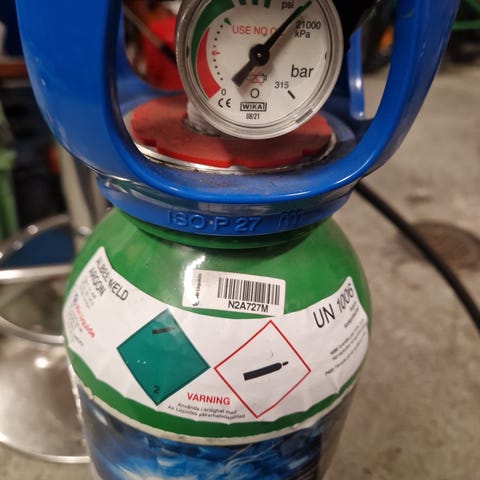 Svets utrustning med slang och tryck regulator. Utrustningen är monterad på en vagn med hjul för enkel transport. Inkluderar regulatorer och kopplingar för gasflaskor. Används för svetsning och skärning med gas. Snabb koppling slangar Tuber är fri köpta ca 4000 Kr styck