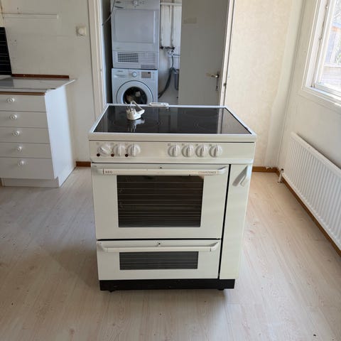 Elektro Helios spis med 3 st plattor och en ugn. Plattor och ugn fungerar. Två av plattorna skulle behövas bytas ut. Jag har två kök i huset och har använt denna tills det att det andra köket var klart. För dig som vill ha en retro spis. Kanske 60 tal. Bredd 55 cm