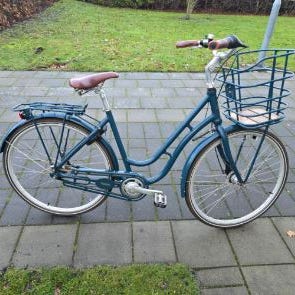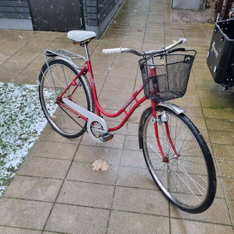 Bekväm damcykel i riktigt bra skick. Den har 3 växlar, handbroms fram & pedalbroms bak, ringklocka, korg och stöd. Nyservad, fungerar som den ska och rullar tyst och fint. Passar en person på 155 till 185 cm. Lås eller lampor ingår ej.