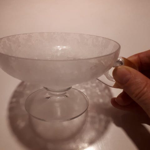 Skålarna har öra och fot och ett ”frostat” mönster.