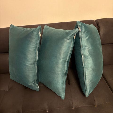 2 st gröna kuddar i skinn. Stl 33 x 33.