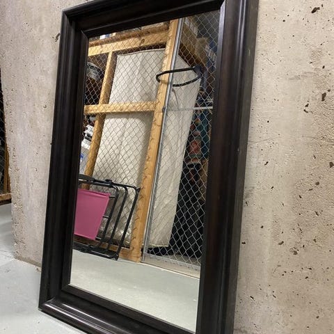 IKEA spegel med enkel design, rektangulär form och vit ram.