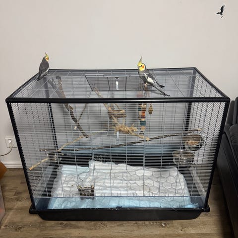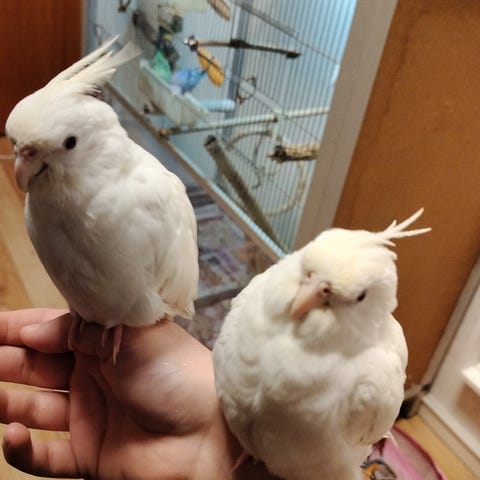 Tyvärr måste säljas pga flytt ,två par på 3år de är friska och lägger ägg , 2 hanar Witheface och en lutino hona och en brickig hone som det syns på bilden, med stor liggade bur två holkar och 12kg mat och leksaker och värmare och lampa och mera tillbehör.