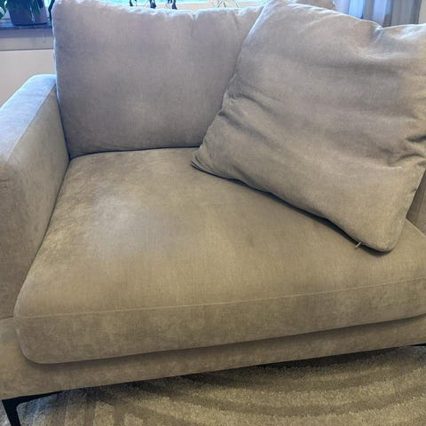 Bekväm fåtölj i sammet med mässingfärgade metallben. Inköpt för ett år sedan. Nypris 4199kr