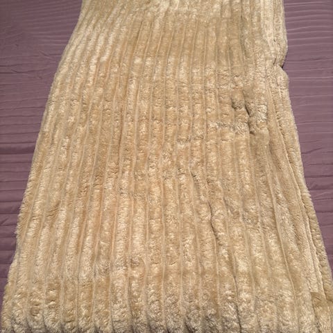 Tvåfärgat överkast till dubbelsäng. Syrenfärgat på ena sidan och lila på andra.