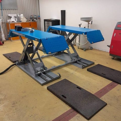 Låg lyftande sax lyft, för personbilar och minder transportbilar.