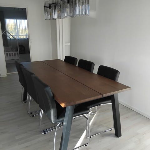 Två stycken IKEA (Norden) matbord i björk med iläggsskiva. 240cm långt och iläggsskivan är ca 60cm. Så totalt blir ca 3m långt.