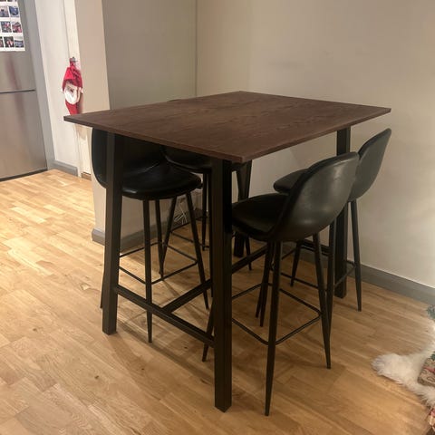 Bord och stolar i fint skick, finns något vattenmärke men i övrigt fint skick.