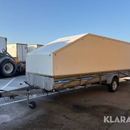 Släp, ett så kallat skotersläp. Neptun. Med tippbart flak. Flakstorlek 3x1,66 m.