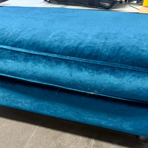 Sweef fåtölj i blå sammet Mycket hög kvalitet. Går bra att tvätta med ångtvätt. Se mer hos