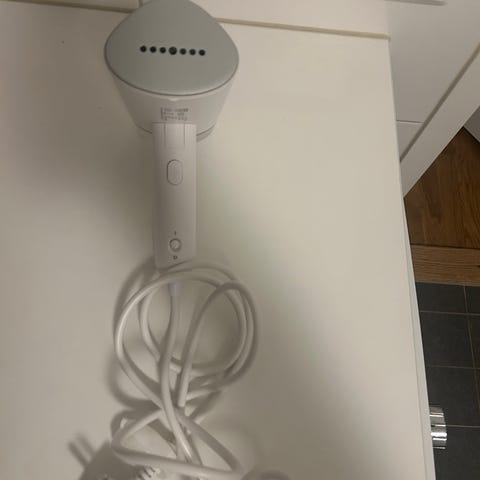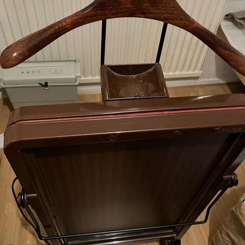Klädhängare med elektrisk funktion, svart ram med träinlägg. Utrustad med sladd för strömförsörjning. Passar för att hänga och värma /stryka kläder.