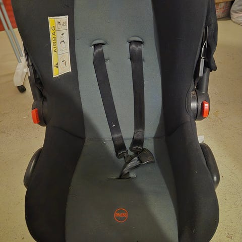 Beemoo Babyskydd för barn upp till ett år. Svart färg och utrustad med säkerhetsbälte och bärhandtag. Designad för att användas i bil och ge skydd för spädbarn. Använd endast ett fåtal gånger.