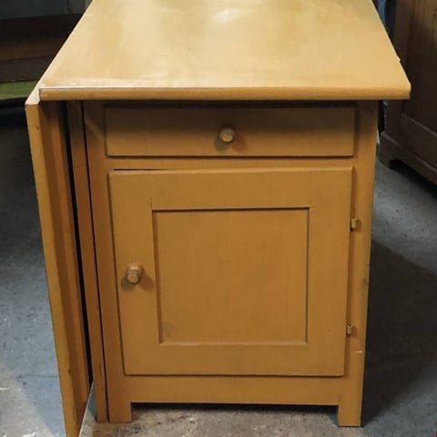 Gustaviansk stil. Respektive del med uppfällbara klaffar, varav en rektangulär och en rundad. Bruksskick, färgslitage.