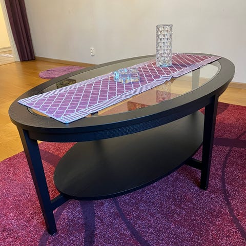Soffbor i mässing med skivor i härdat klar glas.
