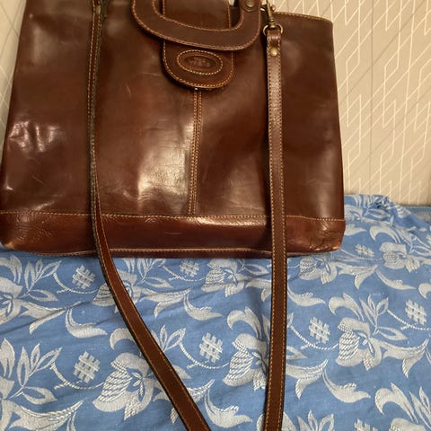 Elegant ljus brun Creazioni crocodile väska från Italien. Handväska i en rektangulär form med ett distinkt krokodilskinnsmönster. Väskan har ett robust handtag och metallspännen som ger en sofistikerad touch. Insidan är rymlig med flera fack för att organisera dina tillhörigheter. Ljust läder inuti med fack med dragkedja samt fack utan dragkedja. En tillhörande dustbag med tryckt logotyp medföljer för att skydda väskan när den inte används. I nyskick ej använd. Mått 35 cm lång, 21 cm hög och 11 cm bred.