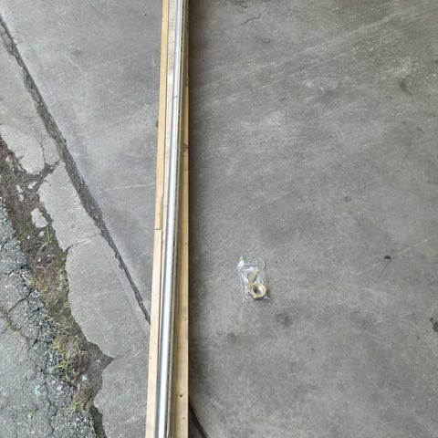 Propelleraxel 40 mm ca 2,2m (är 2,8 men har en svag krökning sista biten, kan riktas eller kapas) i övrigt i mycket fint skick.