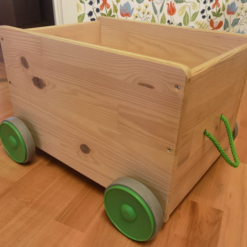 IKEA FLISAT barnmöbel i trä, jag har målat den i vit färg. Möbeln har en enkel design med en förvaringslåda i mitten och är anpassad för barnrum.