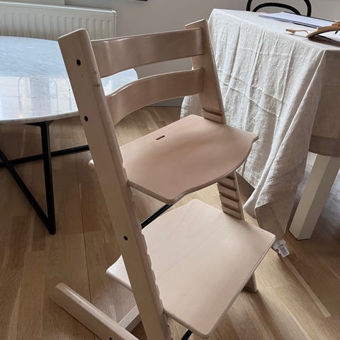Säljer en vit Stokke Tripp Trapp-stol - en riktig designklassiker.