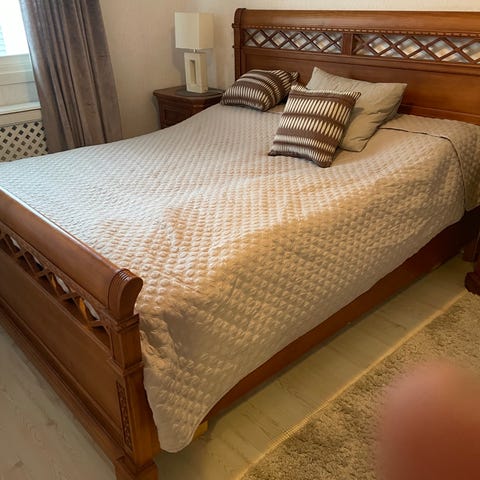 Furusäng i mycket gott skick. Isärtagbar, lätt att flytta. 180x200 cm