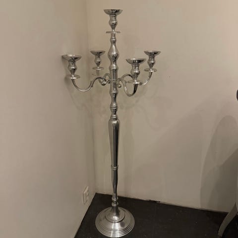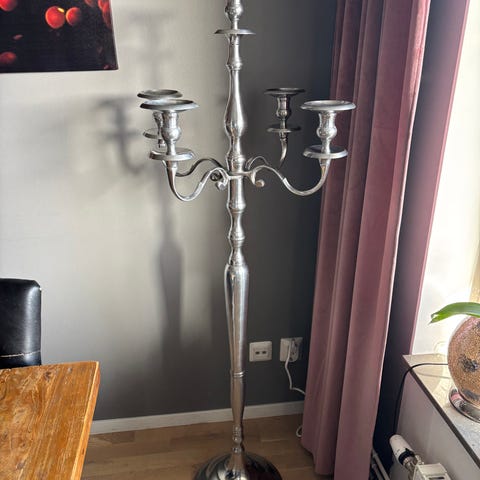Jotex golvljusstake i mässing med fem armar för ljus. Passar som dekoration i olika rum och ger möjlighet att hålla flera ljus samtidigt. Den är 1,60 hög..