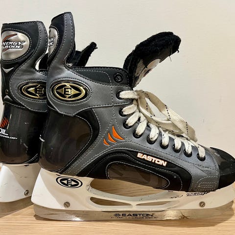Easton Ultra lite Pro från Canada, i stl7.5EE, ett par helt fantastiska Ishockeyskridskor helt i läder både ut och insida (förutom tå-hetta) otrolig komfort (Volym fit + EE = Bred Läst), utbytbara skenor, Dry Flow = ventilerade kolfiberbottenplattor. Bio Dri - Sulor. Riktigt grymma proffsskridskor!