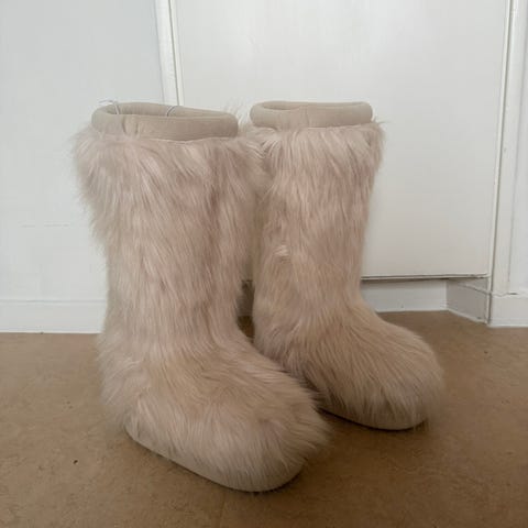 Vinröda vinterstövlar med fuskpäls