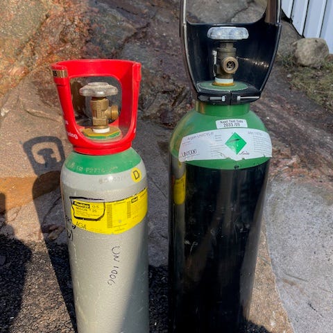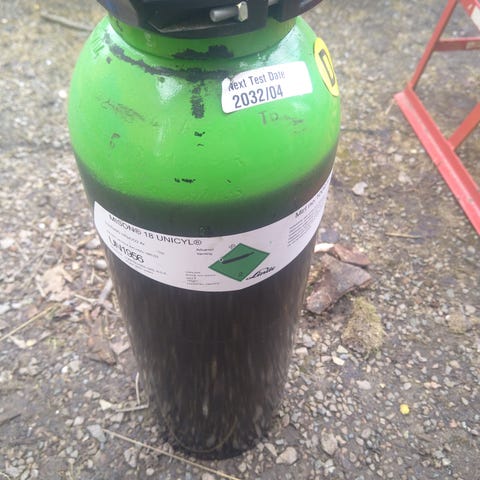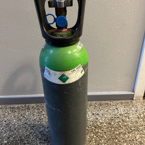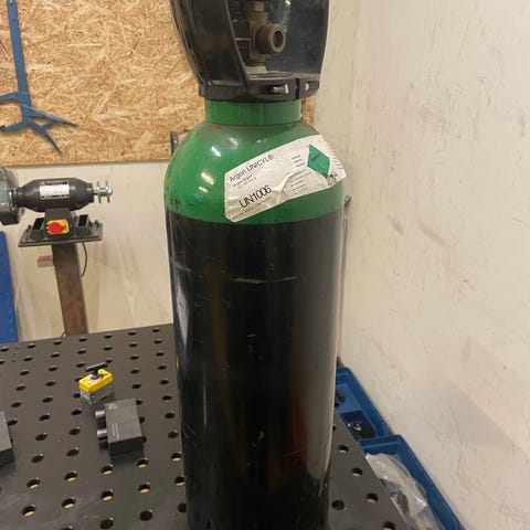 Gasflaska ca halvfull 50.5l flaska 3000kr. Migsvetstråd 15kg 400kr.