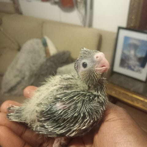 Jag säljer 5 nymfparakiter, den gråa är hane som är 1.5 år gammal och honan är 2 år gammal gul . Och nymfparakiter som jag har på armen ( se bilden ) är nästan 2 månader gamla. De kan äta ensamma och klara sig du kan tama hur lätt som helst i dena ålder. Den gråa som är är hane som är 1.5 år gammal är tam och älskar människor och kommer till dina händer.