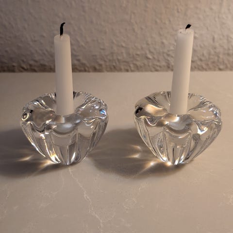 Orrefors Ljusstakar i glas med en vriden design. Tillverkade av klart glas, passar för dekoration och belysning i hemmet. olika storlek