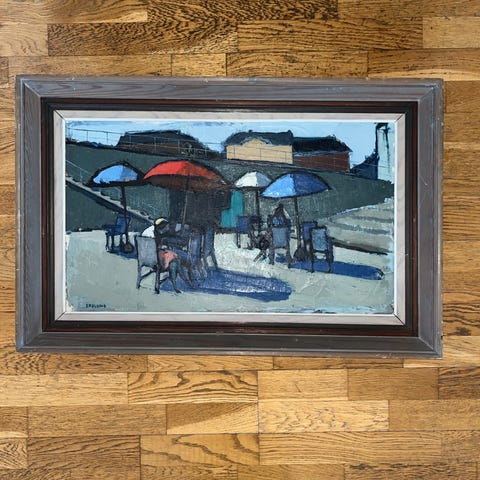 Stilsäker retro oljemålning 1963 – Porträtt på Beckerpannå