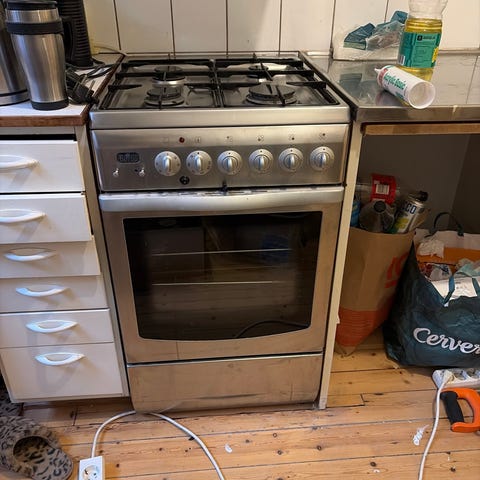 Gorenje Gasspis med fyra gasbrännare och ugn. Vit färg med vred för temperatur- och spisreglering. Passar för matlagning med gas som energikälla.