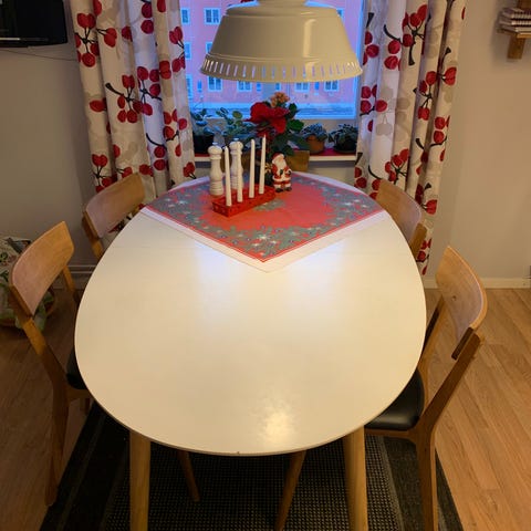 Bord med 4 stolar från Mio. Finns skavanker på bordsskivan.