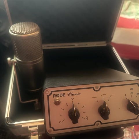 Røde NK-1 mikrofon med stativ, popfilter och en ca 8 meter lång sladd. Allt ingår.