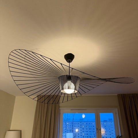 Vertigo taklampa 200 är en elegant och uttrycksfull takpendel formgiven av den franska designern Constance Guisset för det franska designvarumärket Petite Friture. Lampan ger rummet karaktär utan att dominera, där den luftiga och nätta formen skapar en känsla av rörelse och lätthet samtidigt som den naturligt drar blickarna till sig.