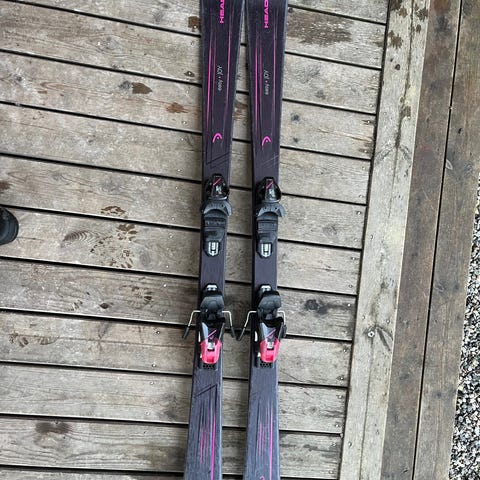 Dynastar Exclusive skidor med bindningar, stavar och pjäxor. Skidor, 148 cm långa, pjäxor stl 24,5 (38), stavar Scott, 110 cm. Komplett skidutrustning inklusive pjäxväska för transport.