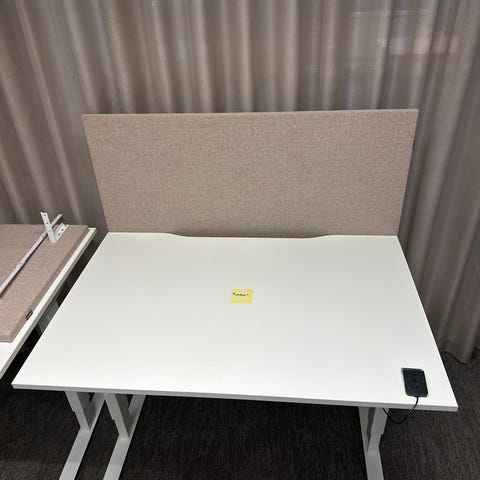 Säljer ett stabilt och rymligt eldrivet höj- och sänkbart skrivbord med extra stor arbetsyta. Passar utmärkt som studiobord, kontorsbord eller arbetsplats med flera skärmar.