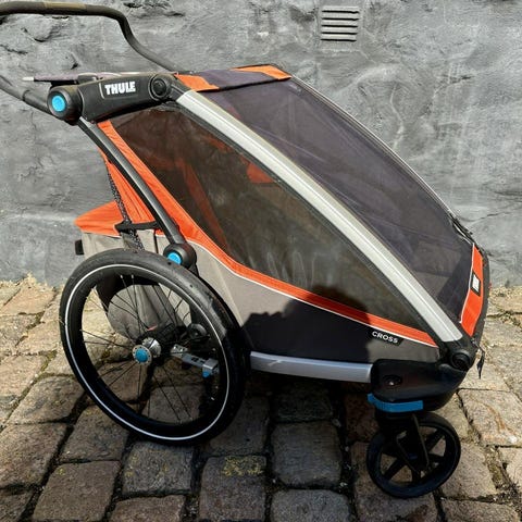 Säljer vår Cykelvagn Thule chariot sport 2 - singel sits. Har använt den för drygt ett och halv år. Vagnen är i bra skick. Säljer den tillsammans men jogging/all terrain kit, winter muff (åkpåse), och oanvänt baby supporter.