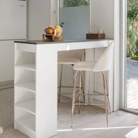 Barbord i massiv valnöt med toppskiva i vit laminat