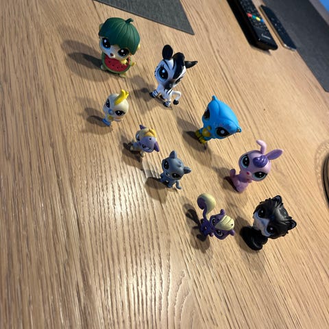 Set med Littlest Pet Shop (LPS) figurer. Totalt 5 djurfigurer + 1 tillbehör enligt bilder. Olika modeller och färger, perfekta för lek, samling eller dekoration.