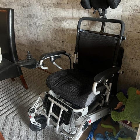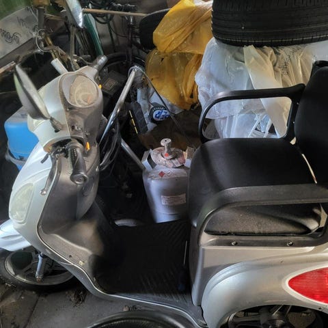 Liten plastskada framtill vid vänster framhjul dock inget som påverkar funktionen.